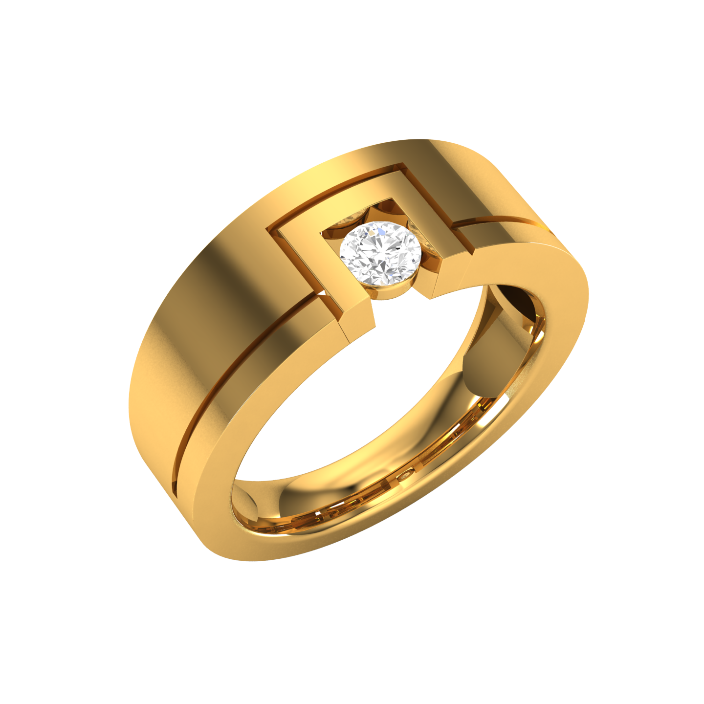 The Architect Men's Solitaire Ring showcases a modern design with architectural flair, crafted in yellow gold. Featuring a central round diamond set within a unique, angular pattern, this ring combines bold geometry with refined elegance, perfect for the man with a keen eye for contemporary style. Crafted with precision, this exquisite piece is adorned with shimmering lab-grown diamonds, offering a sustainable and ethically sourced sparkle. Please contact us if you’d like to customize this design with natural diamonds.