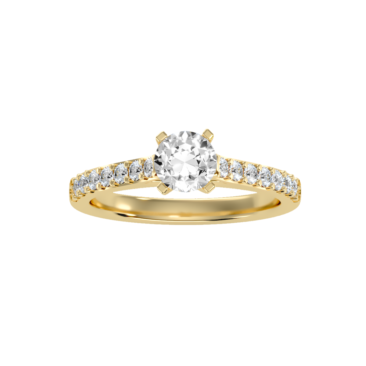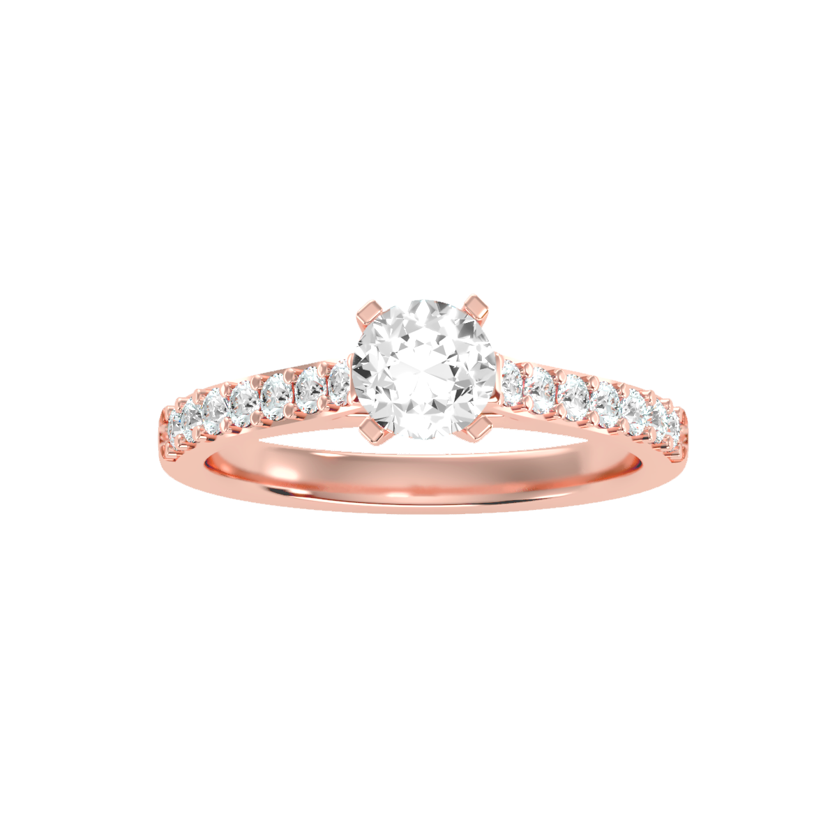 The Eternal Sparkle Ring is a timeless masterpiece, featuring a stunning central diamond complemented by a band adorned with a row of smaller diamonds. The design exudes sophistication and elegance, making it the perfect choice for those seeking a blend of classic beauty and modern brilliance. Ideal for special occasions or as a daily symbol of enduring love, this ring's radiant sparkle is sure to captivate. Crafted with precision, this exquisite piece is adorned with shimmering lab-grown diamonds, offering a sustainable and ethically sourced sparkle. Please contact us if you’d like to customize this design with natural diamonds.