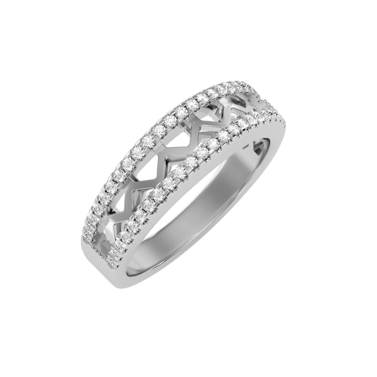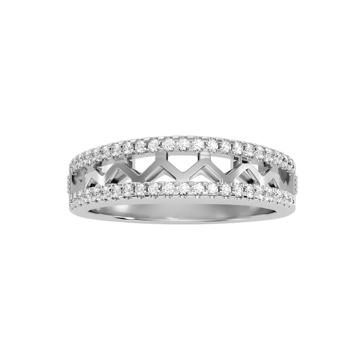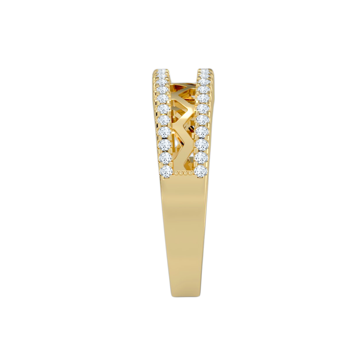 This unique diamond band features a captivating lattice design, framed by two rows of sparkling diamonds set in luxurious gold. The intricate openwork pattern adds depth and dimension, making this ring a perfect blend of modern elegance and timeless beauty. Crafted with precision, this exquisite piece is adorned with shimmering lab-grown diamonds, offering a sustainable and ethically sourced sparkle. Please contact us if you'd like to customize this design with natural diamonds.