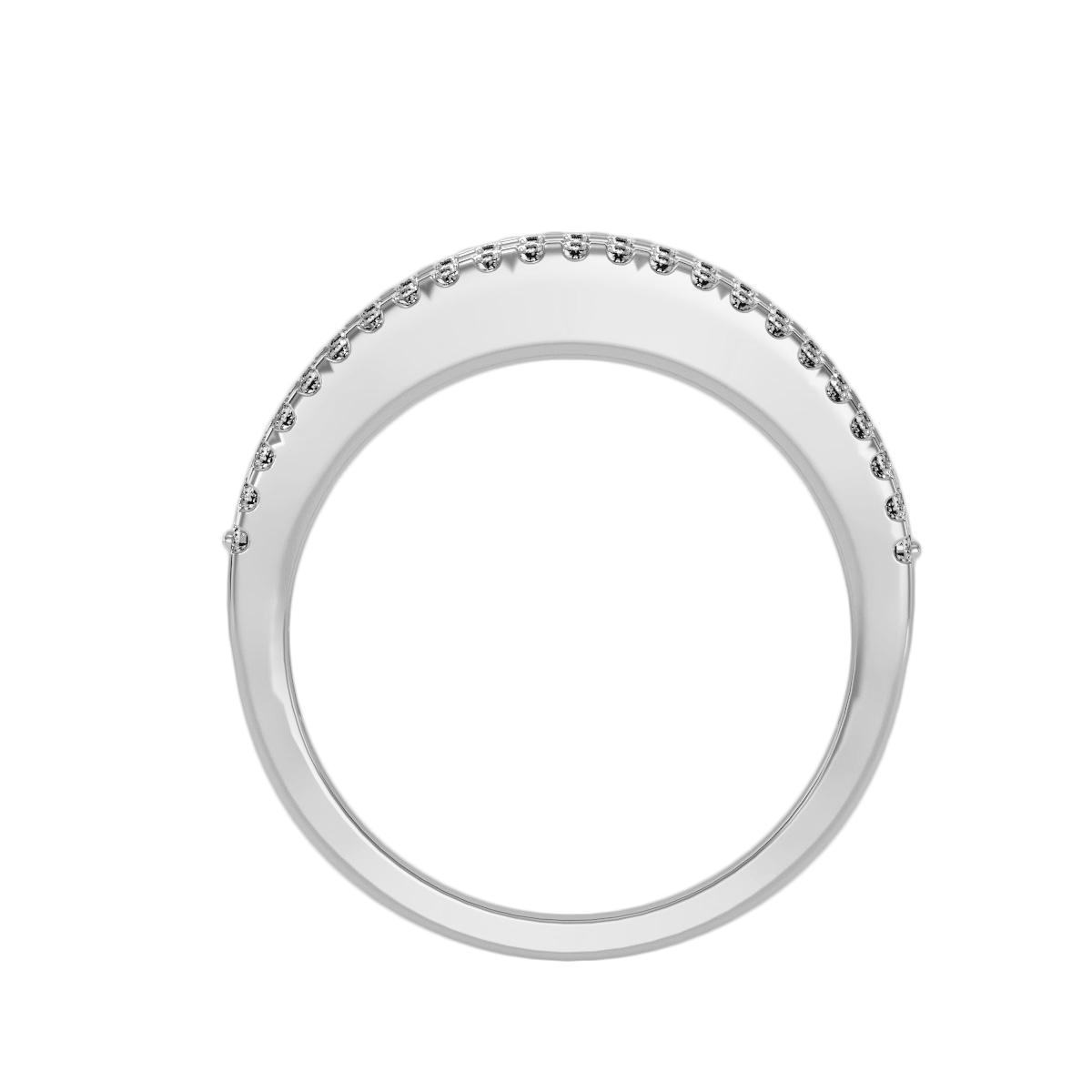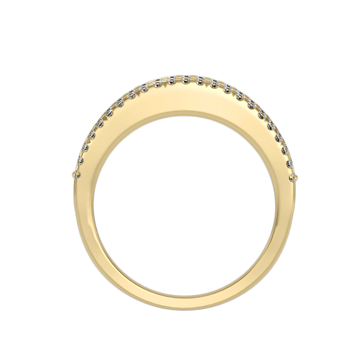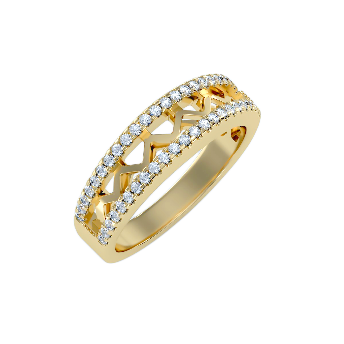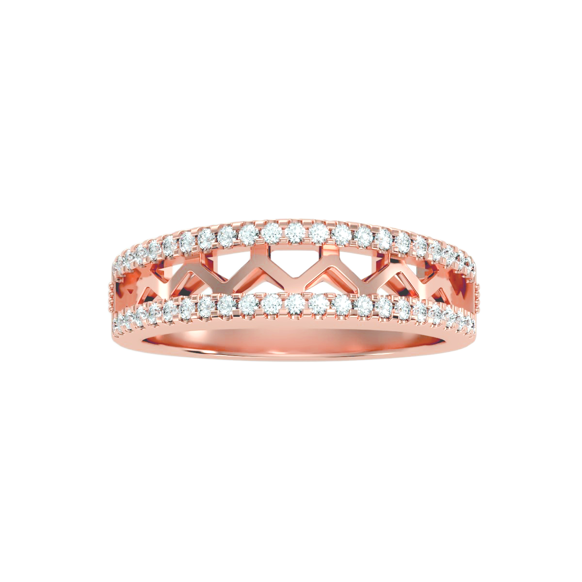 This unique diamond band features a captivating lattice design, framed by two rows of sparkling diamonds set in luxurious gold. The intricate openwork pattern adds depth and dimension, making this ring a perfect blend of modern elegance and timeless beauty. Crafted with precision, this exquisite piece is adorned with shimmering lab-grown diamonds, offering a sustainable and ethically sourced sparkle. Please contact us if you'd like to customize this design with natural diamonds.