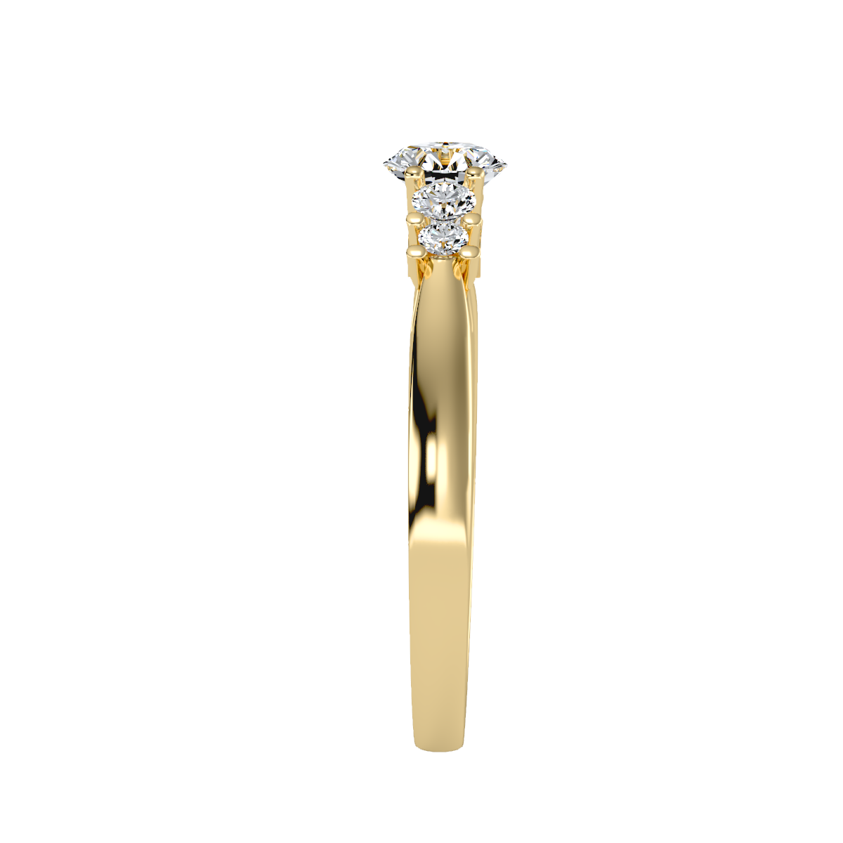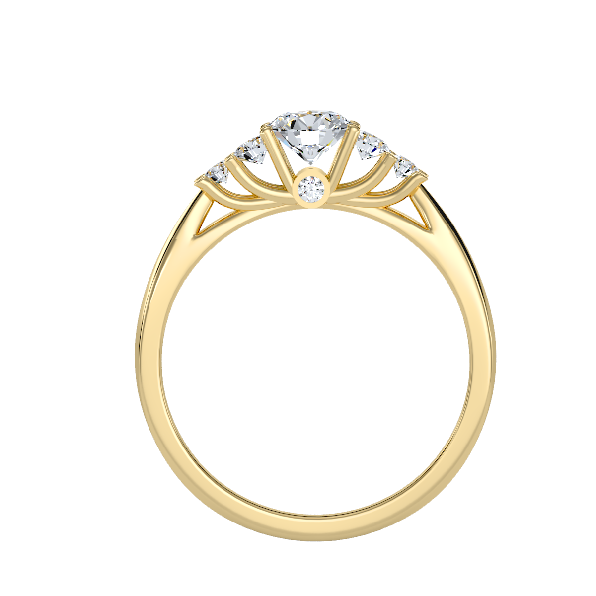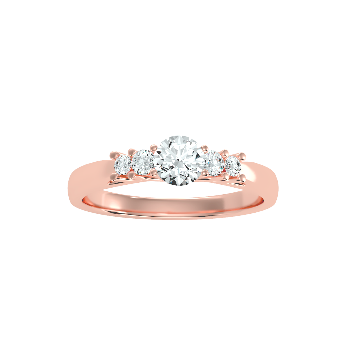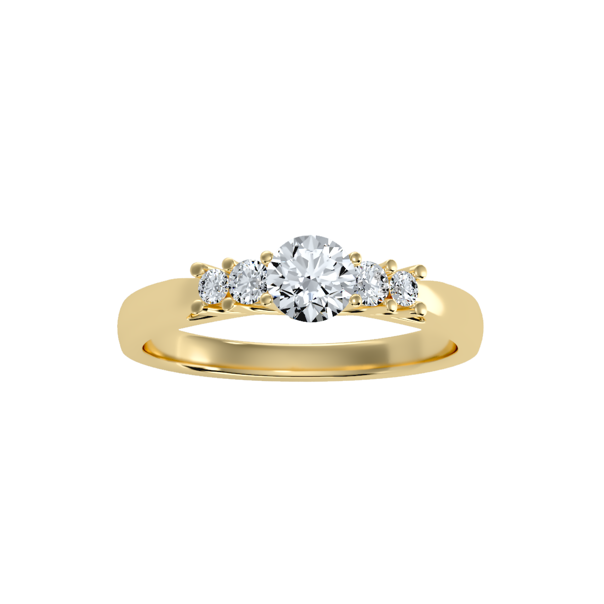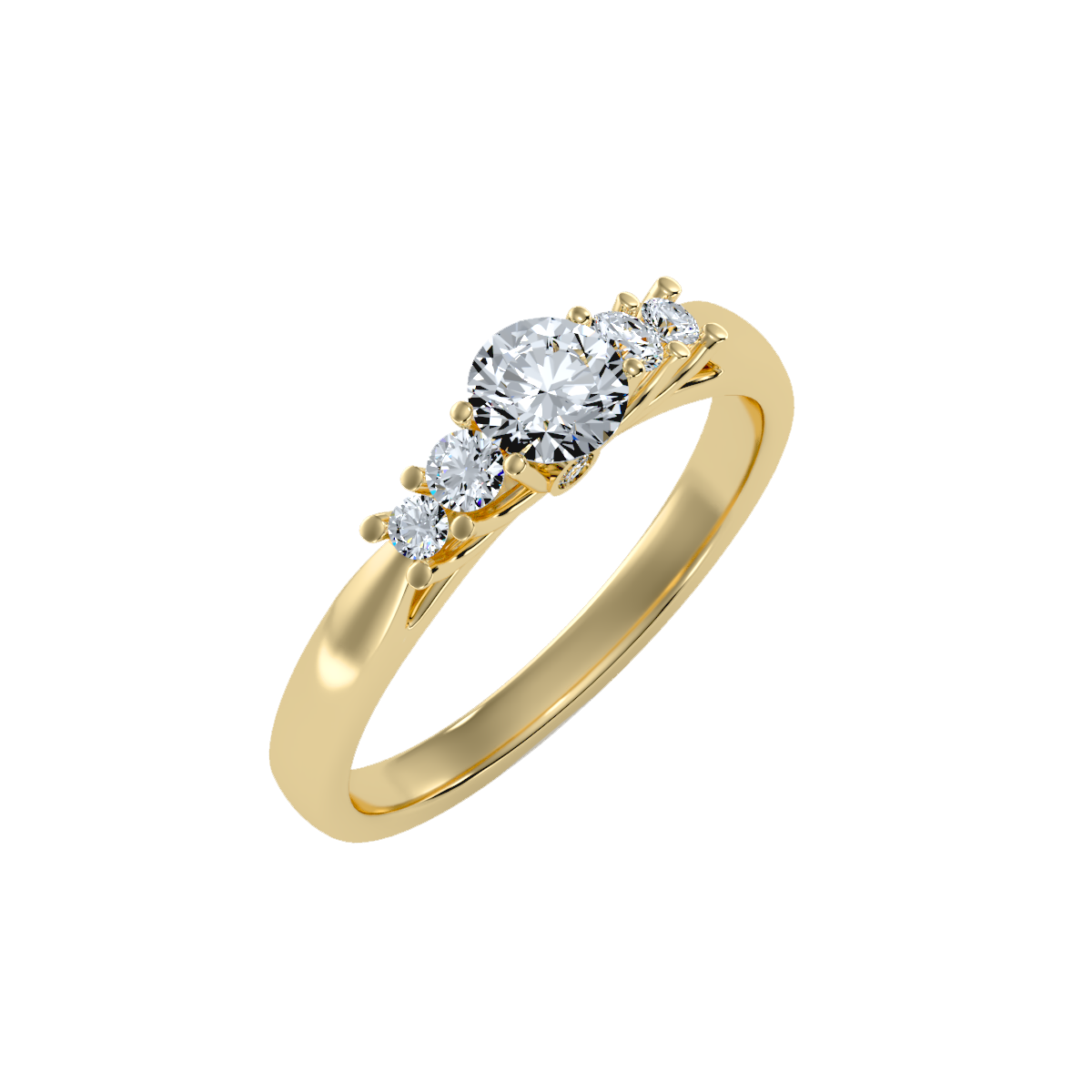 The Quintet Sparkle Ring features a radiant central diamond, beautifully complemented by four smaller diamonds on each side. This arrangement creates a dazzling row of five diamonds, symbolizing unity and harmony. The sleek band enhances the brilliance of the diamonds, making it an exquisite choice for both special occasions and everyday elegance. Perfect for those who appreciate a blend of classic and modern design. Crafted with precision, this exquisite piece is adorned with shimmering lab-grown diamonds, offering a sustainable and ethically sourced sparkle. Please contact us if you’d like to customize this design with natural diamonds.